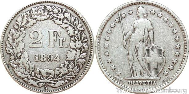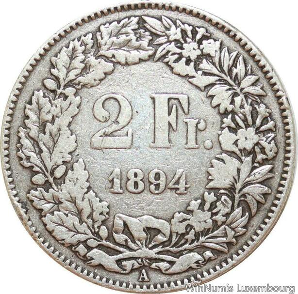 R8959 Switzerland 2 Francs Helvetia 1894 A Paris Silver -> Make offer