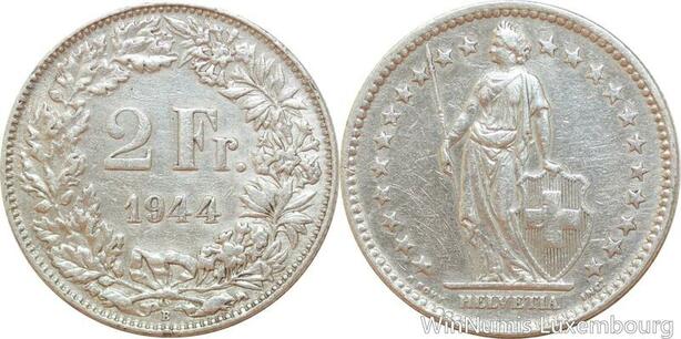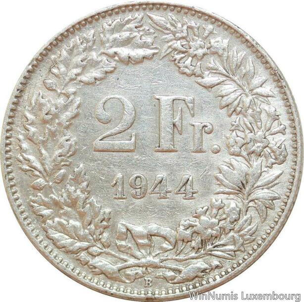 R8964 Switzerland 2 Francs Helvetia 1944 B Berne Silver -> Make offer