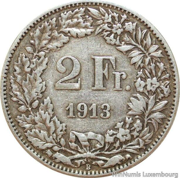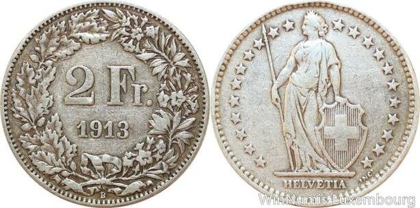 R8965 Switzerland 2 Francs Helvetia 1913 B Berne Silver -> Make offer