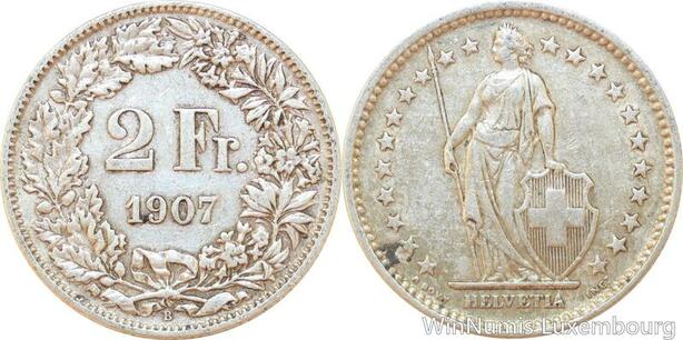 R8967 Switzerland 2 Francs Helvetia 1907 B Berne Silver -> Make offer