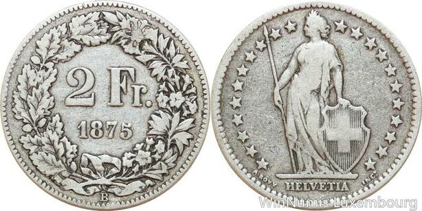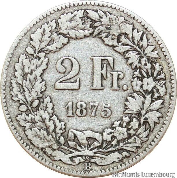 R8970 Switzerland 2 Francs Helvetia 1875 B Berne Silver -> Make offer