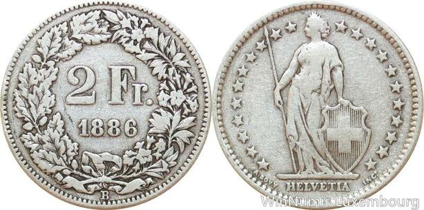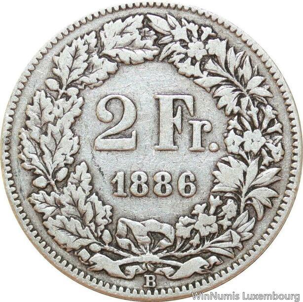 R8976 Switzerland 2 Francs Helvetia 1886 B Berne Silver -> Make offer