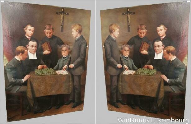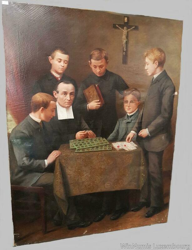 R9009 Unique Giant Oil Painting 1,5m Gold Numismatic Collection French Art 1887