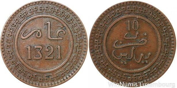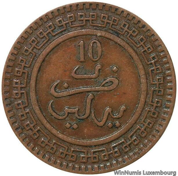 R9013 Rare Morocco 10 Mazounas Abd Al Aziz AH 1321 1904 Berlin -> Make offer