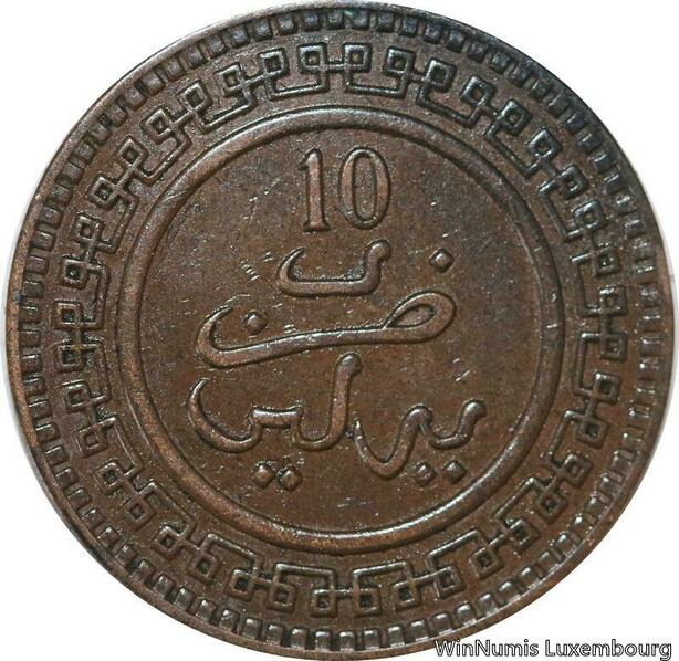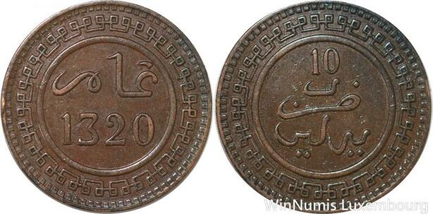 R9018 Rare Morocco 10 Mazounas Abd Al Aziz AH 1320 1903 Berlin -> Make offer