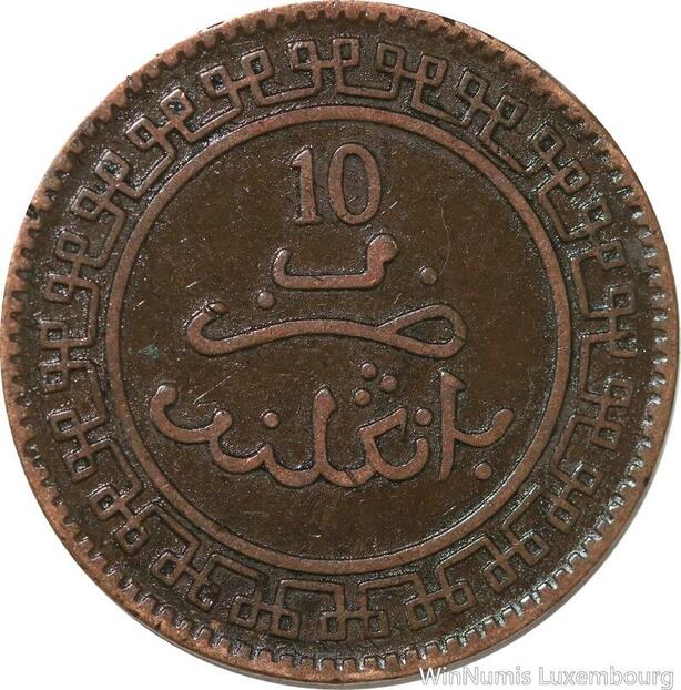 R9019 Rare Morocco 10 Mazounas Abd Al Aziz AH 1320 1903 Birmingham -> Make offer