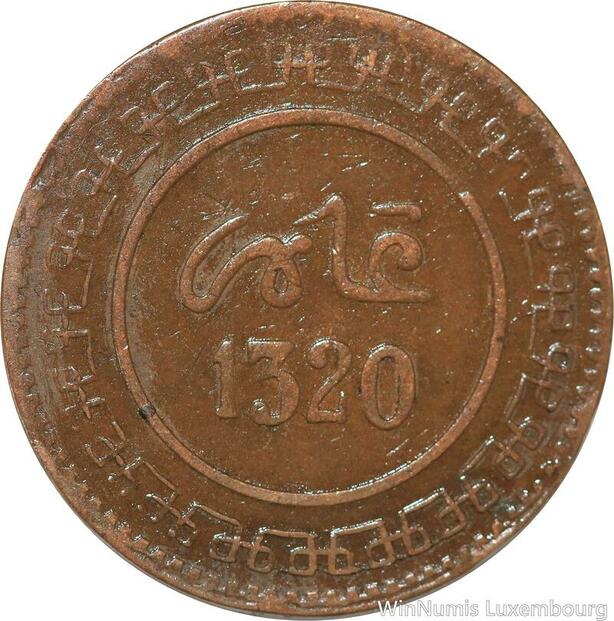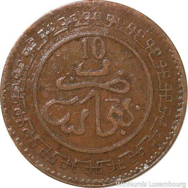 R9027 Rare Morocco 10 Mazounas Abd Al Aziz AH 1320 1903 Fes Large Letters >Offer