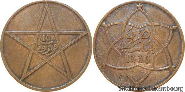 R9041 Morocco 10 Mazunas Yusuf AH 1330 1912 Paris -> Make offer