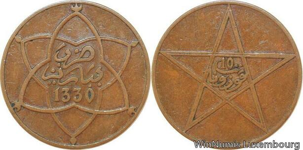 R9043 Morocco 10 Mazunas Yusuf AH 1330 1912 Paris -> Make offer