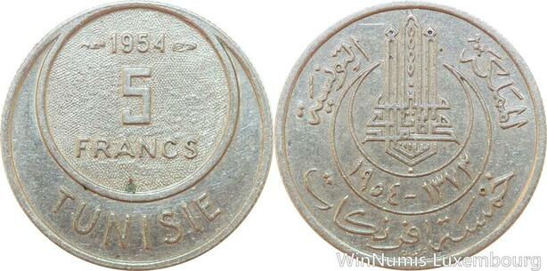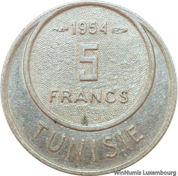 R9045 Tunisia 5 Francs Muhammad al-Amin Bey AH 1373 1954 Paris AU -> Make offer