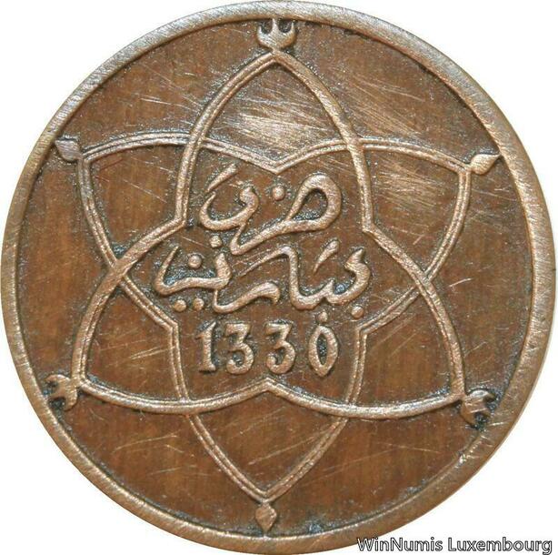 R9053 Morocco 2 Mazunas Yusuf AH 1330 1912 Paris -> Make offer