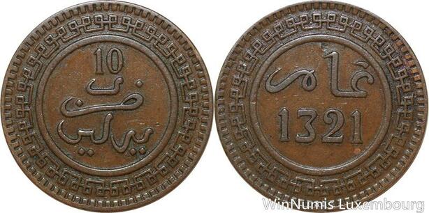 R9066 Morocco 10 Mazunas Abd al-Aziz AH 1321 1903 Berlin -> Make offer