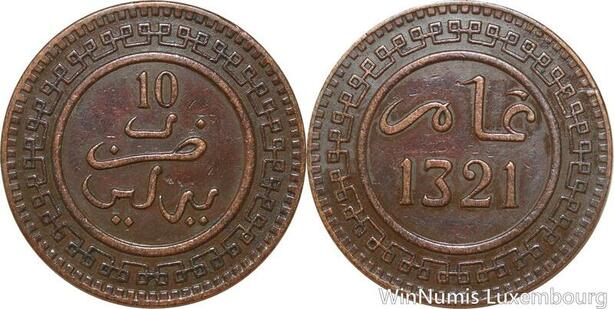 R9074 Morocco 10 Mazunas Abd al-Aziz AH 1321 1903 Berlin -> Make offer