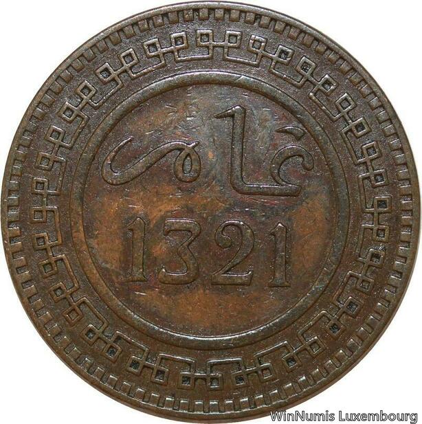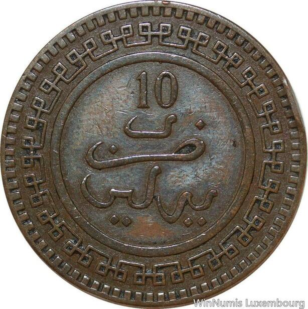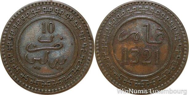 R9075 Morocco 10 Mazunas Abd al-Aziz AH 1321 1903 Berlin -> Make offer