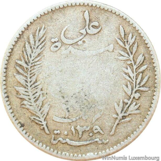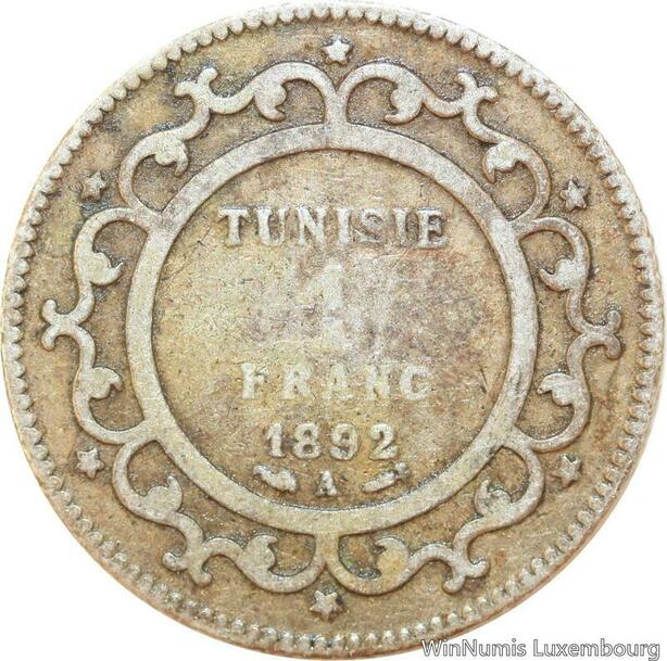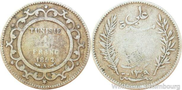 R9107 Tunisia 1 Franc Ali Bey AH 1309 1892 A Paris Silver -> Make offer