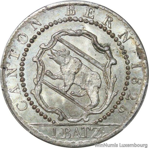 R9128 Rare Switzerland Bern Cantons 1 Batz Bear 1826 PCGS MS66 -> Make offer