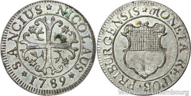 R9129 Rare Switzerland Freiburg 2 Kreuzer 1/2 Batzen 1789 BU UNC -> Make offer