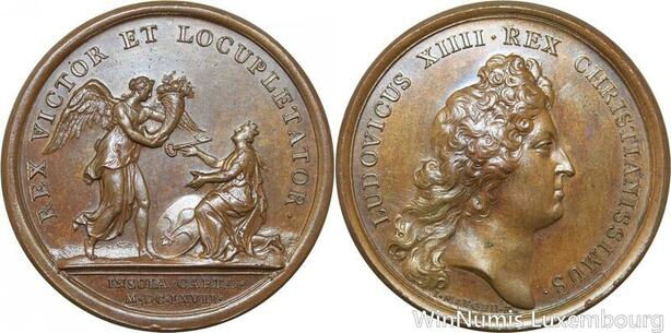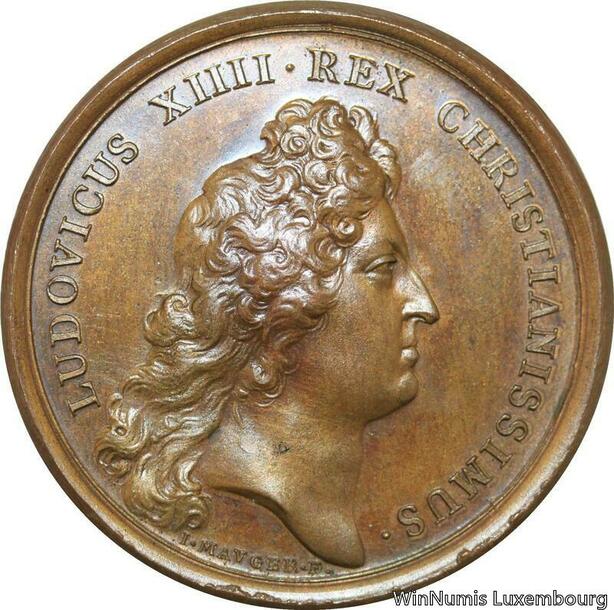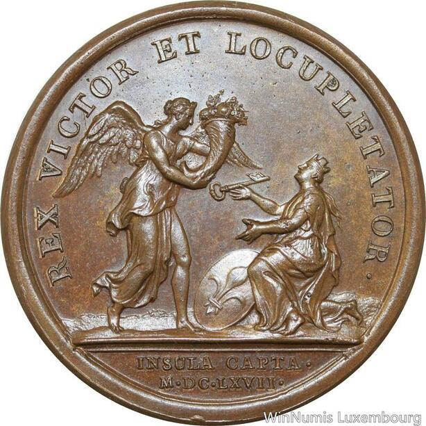 R9134 Rare Médaille Louis XIV Capture Lille à genoux 1667 Mauger UNC >Make offer