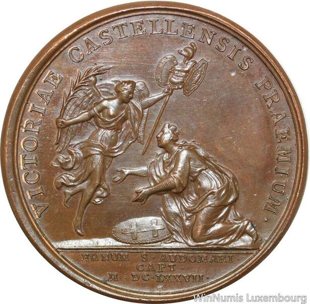 R9139 Rare Médaille Louis XIV Prise Saint Omer sur les Espagnols 1677 Mauger UNC