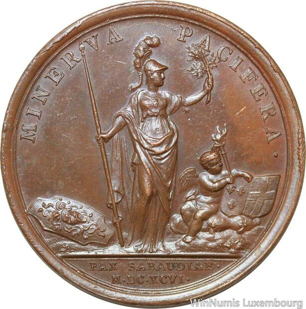 R9141 Rare Médaille Louis XIV Paix avec le Duché de Savoy 1696 Mauger UNC >Offer