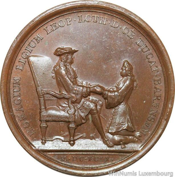 R9142 Rare Médaille Louis XIV Hommage Duc Léopold Lorraine Duché Bar 1699 UNC