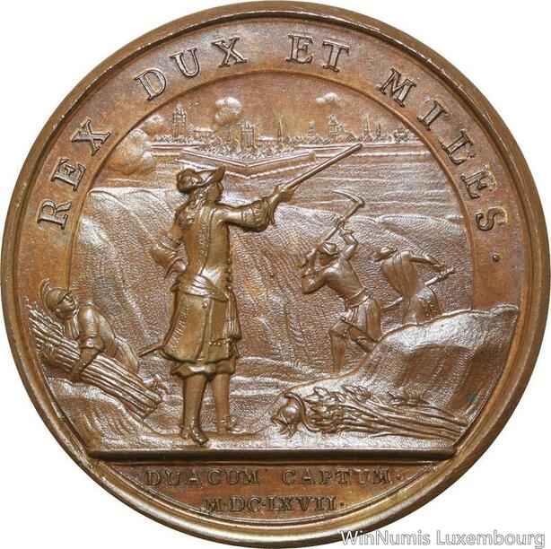 R9143 Rare Médaille Louis XIV Prise de Douai 1667 Mauger UNC -> Make offer
