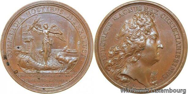 R9155 Rare Medal Spain Louis XIV Victory on British Fleet Gibraltar 1696 UNC