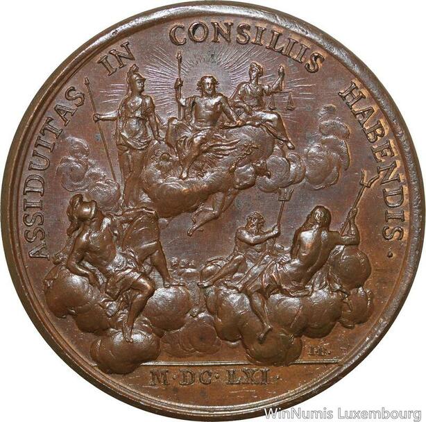 R9188 Rare Médaille Louis XIV Assiduité du Roi à ses conseillers 1661 UNC >Offer
