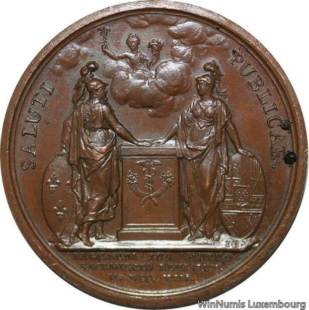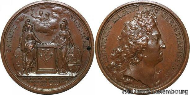 R9247 Rare Médaille Louis XIV Philippe V Roi Espagne renonce au trône 1713 UNC