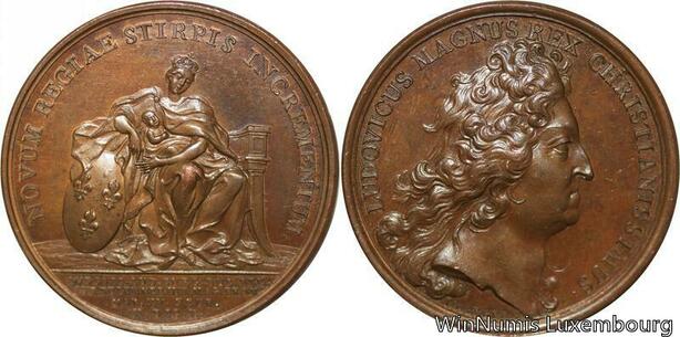 R9248 Rare Médaille Louis XIV Naissance Duc d'Anjou Louis XV 1710 UNC >M Offer