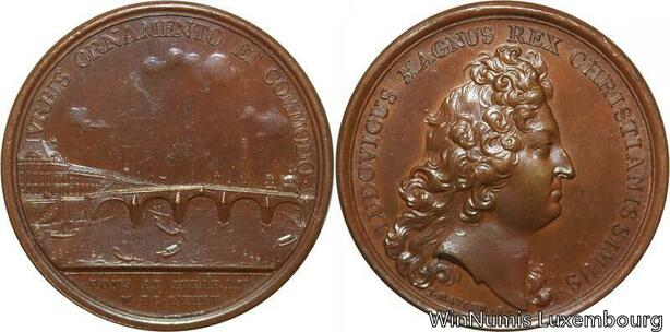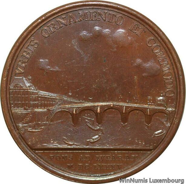 R9256 Rare Médaille Louis XIV Construction Pont Royal Paris Tuileries 1685 UNC