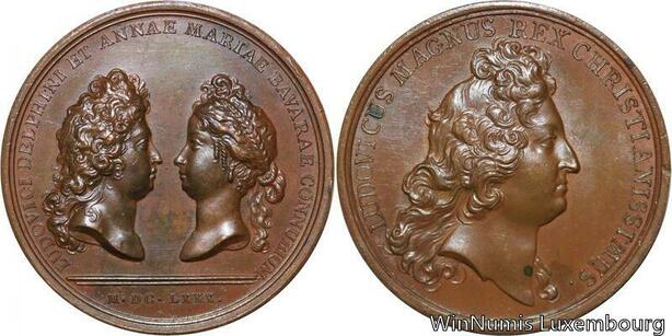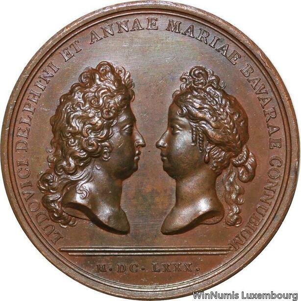 R9257 Rare Medal Mariage Fils Louis XIV Dauphin A-Marie de Bavière Munich 1680