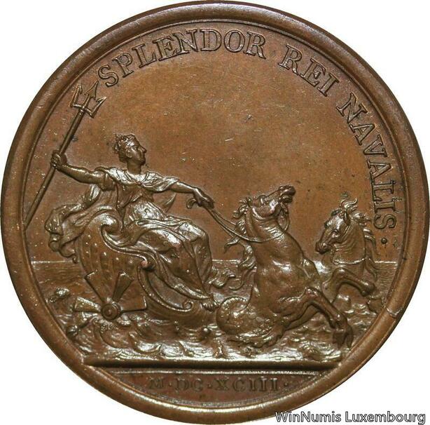 R9271 Rare Médaille Louis XIV La Marine florissante Char Neptune 1693 UNC >Offer