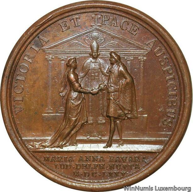 R9274 Rare Médaille Louis XIV Mariage Dauphin M-Anne de Bavière Munich 1680 UNC