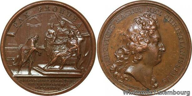 R9291 Rare Médaille Louis XIV M-Louise Orléans Mariage Roi Charles II Spain 1679