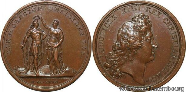 R9303 Rare Médaille Louis XIV Levée du siège de Charleroi 1672 AU -> Make offer