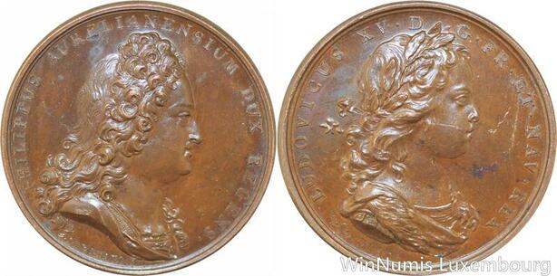 R9339 Rare Médaille Louis XV Régent Philippe Orléans Le Blanc 1715 1774 UNC