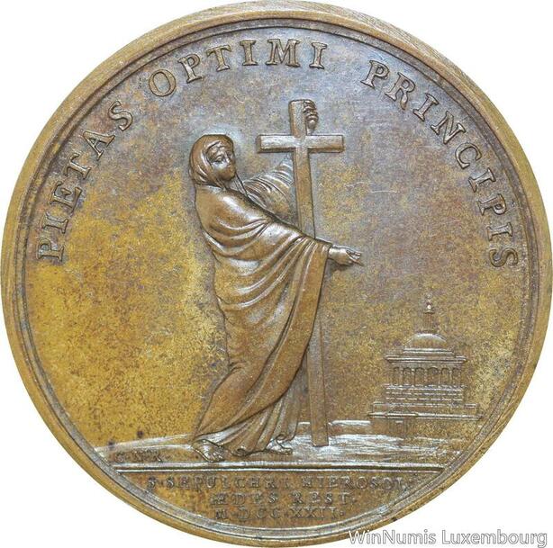 R9342 Rare Médaille Louis XV Eglise Saint-Sépulcre Jérusalem Israël 1722 UNC