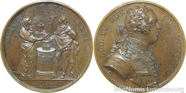 R9361 Rare Médaille Louis XV Le Roi Voeux Louis XIII Roettiers 1738 UNC ->Offer