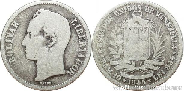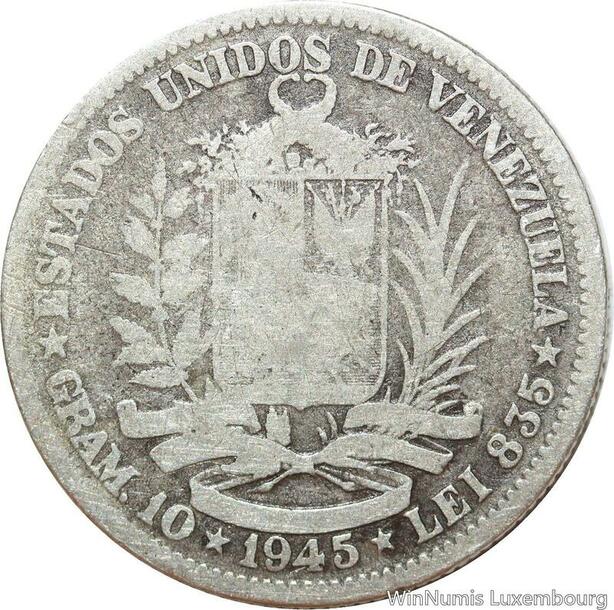 R9388 Venezuela 2 Bolivar Libertador 1945 P Philadelphia Silver -> Make offer