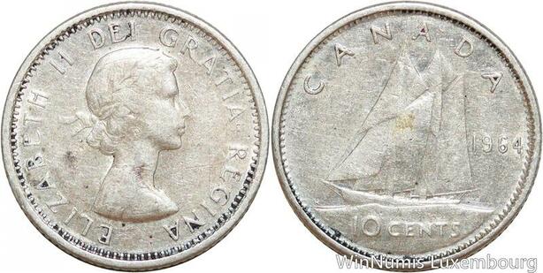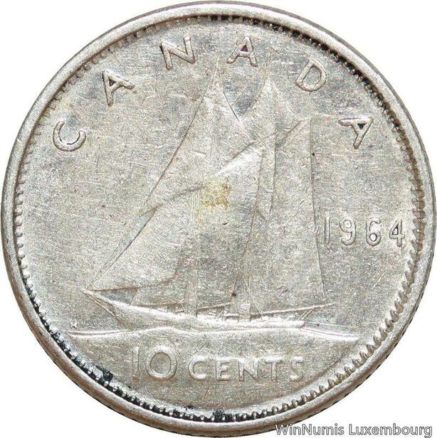 R9390 Canada 10 Cents Elisabeth II Sailing Boat 1964 Silver -> Make offer