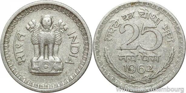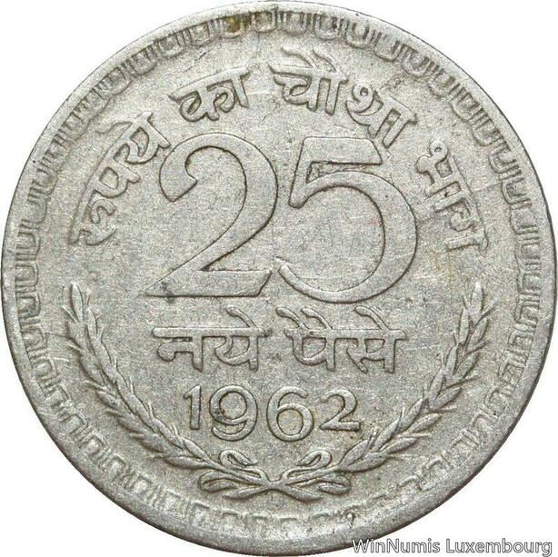 R9392 India Republic 25 Naye Paise Asoka lion pedestal 1962 -> Make offer