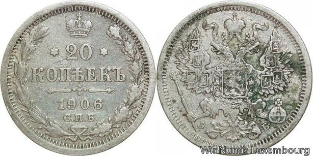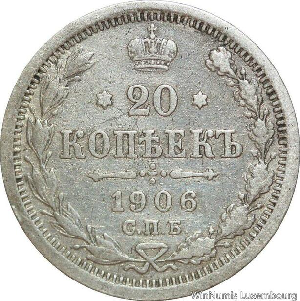 R9405 Russia 20 Kopeks Nicholas II 1906 EB St Petersburg Silver -> Make offer