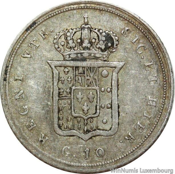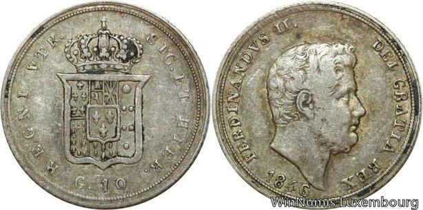 R9411 Rare Italy Kingdom Two Siciles 10 Grana Ferdinando II 1846 Naples Silver