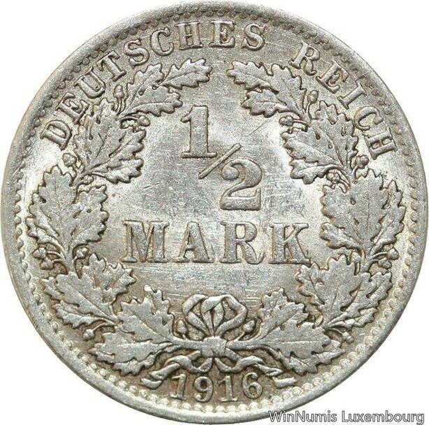 R9433 Germany Empire 1/2 Mark Wilhelm II 1915 A Berlin Silver AU -> Make offer