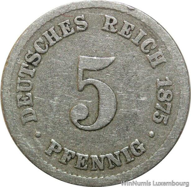 R9434 Germany Empire 5 Pfennig Wilhelm I 1875 B -> Make offer