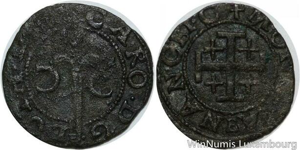 R9495 Inedit Duché Lorraine 2 Deniers Charles IV Croix pattée Epee 1625 1675