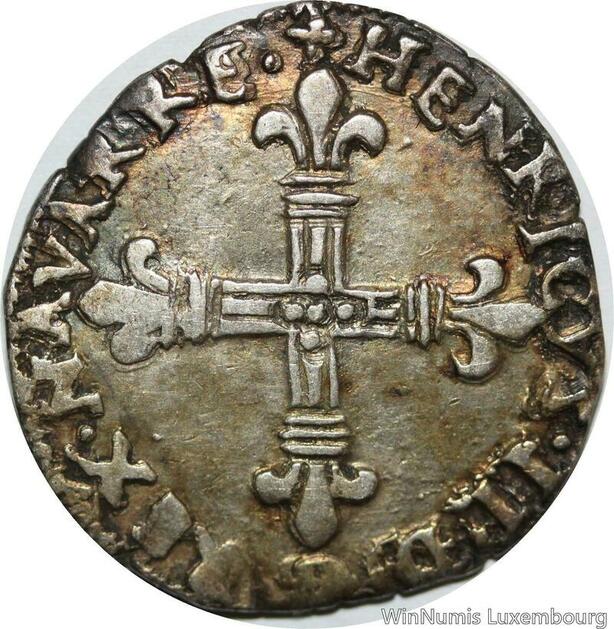 R9514 Rare 1/4 Ecu Navarre Henri III 1585 Saint Palais Silver Fr Médaille AU SUP