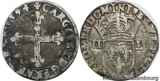 R9521 Rare 1/4 Ecu Charles X 1594 T Nantes Silver -> Make offer
