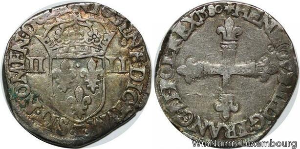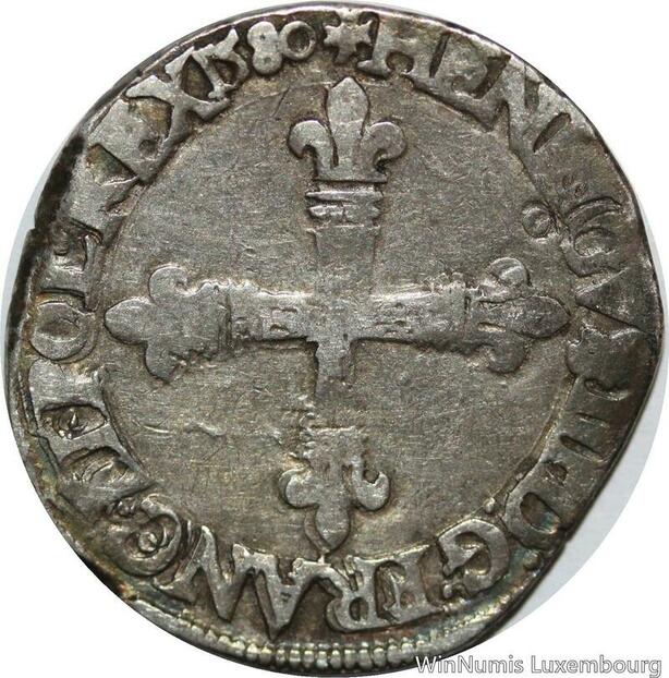 R9525 Rare 1/4 Ecu Henri III 1580 T Nantes Silver -> Make offer